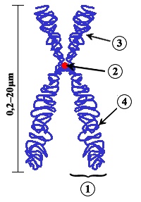 I think chromosomes are kind of cute. I love the visual representation of the “pinch” -also known as the centromere, illustrated below where the red dot is (image from Wikipedia).