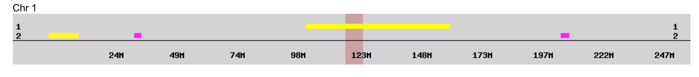 See that vertical pink line right around 123M? That’s how Gedmatch visually represents the centromere. The centromere doesn’t change anything or require you to take anything into account when looking at the chromosome browser, but it’s good to know what it is since it’s being visually represented.