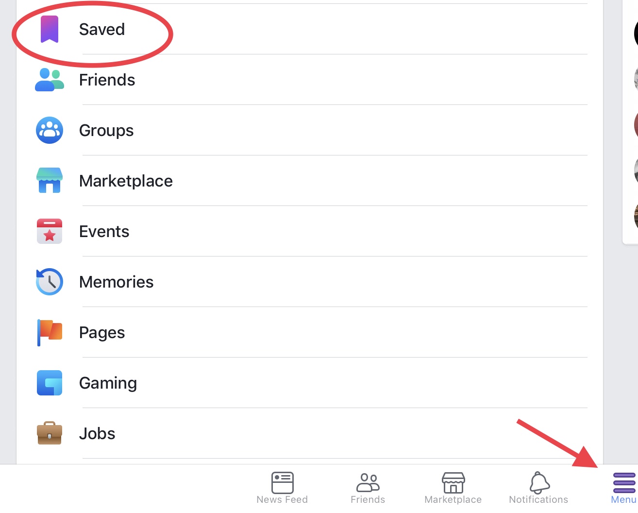 Or if you’re using the app, click on “Menu” and then “Saved”