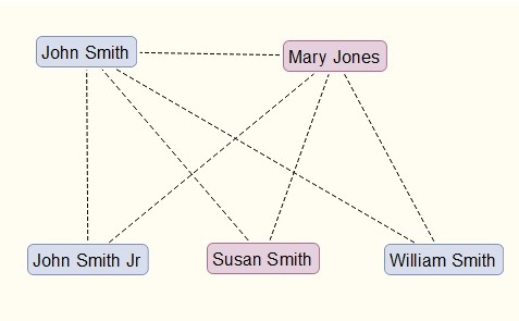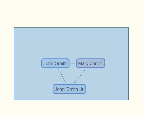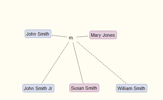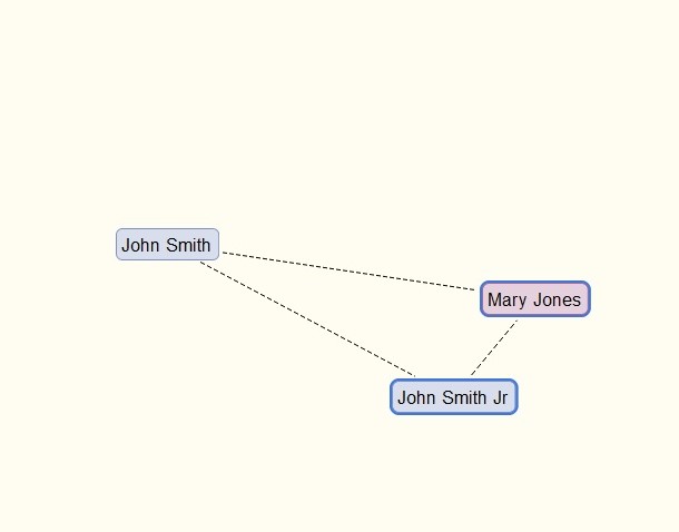 Step 3) Back to step 1, this time creating their son, John Smith Jr. Following Step 2 again, I connected him to his parents.