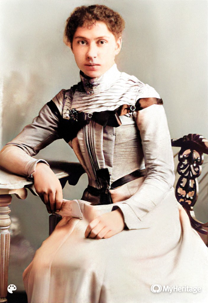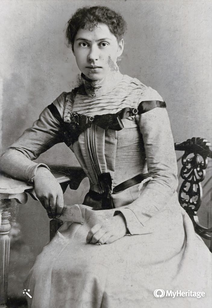 - MyHeritage, colorization of Emma Barton, 2020, digital image, c. 1902, author’s files.