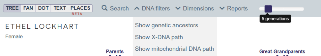 You can also click on “show genetic ancestors” and they will be marked with a DNA symbol.